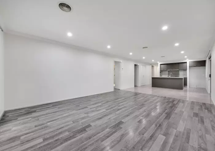 Nestled in the sought-after precinct of Melton South, this beautifully presented 3-bedroom home offers a harmonious blend of comfort, practicality, and modern living. The master bedroom features a spacious walk-in robe and ensuite, while the remaining two bedrooms are fitted with built-in robes and serviced by a central bathroom with a separate toilet ideal for growing families or guests. The heart of the home is the open-plan kitchen, meals, and family area, complete with stainless steel appliances and ample bench space, perfect for everyday living and entertaining. Ducted heating ensures year-round comfort, and the double car garage adds convenience. Located in a thriving community, this property is close to local schools, Melton Train Station, Woodgrove Shopping Centre, and picturesque parklands. With easy access to major roads and public transport, this home presents an exceptional opportunity for those seeking a low-maintenance lifestyle in a well-connected location.