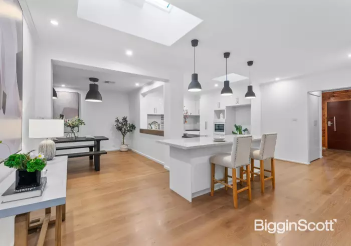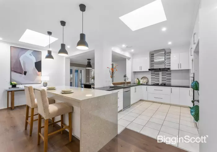 Functionality is the key feature of this fabulous home, where a family-friendly layout combines stylish living zones with impressive entertaining credentials to create a package that’s perfect for multi-generational families, in the East Doncaster Secondary zone (STSA). Flaunting stylish features throughout, the home’s enticing dimensions begin with a light-filled lounge room that sits beside the entry foyer and boasts a bank of windows, contemporary flooring and a cosy fireplace. High ceilings, beautiful lightwells and a servery bar enhance the feeling of spacious connectivity throughout the dining zone and central kitchen, while quality appliances, Bellini dishwasher, double sink and a breakfast bench ensure the home chef has all they need to create tasty meals for the family. Bi-fold doors retract to reveal an impressive alfresco/sunroom that’s been conveniently enclosed to create the perfect space for year-round entertaining, with sliding doors opening from two sides onto a deck and paved entertaining area, as well as a tidy backyard. Ready to please the largest of families, the home embraces a home office plus five bedrooms, including two master suites. Privately placed at opposite ends of the home, the master suites include one with a walk-in-robe and fully tiled ensuite, and one offering a delightful window seat, built-in-robes and a fully tiled ensuite with twin vanity. Furthermore, the home features a twin vanity bathroom, separate toilet, laundry, high ceilings, ducted heating, evaporative cooling, ceiling fans plus a double garage. Magnificently situated to fulfil the family's lifestyle requirements, within the Milgate Primary and East Doncaster Secondary zones, close to Our Lady of the Pines Primary, Carey Grammar, Donvale Christian College, Tunstall Square shops, Westfield Doncaster, buses and the Eastern Freeway.