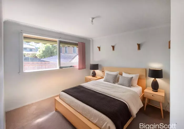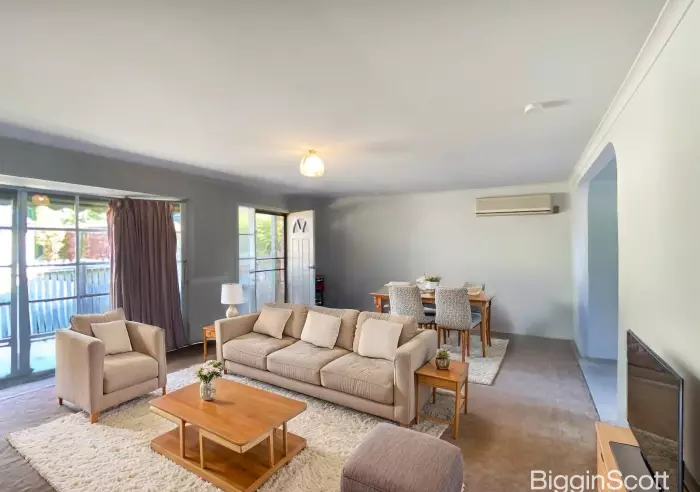 Contemporary and alluring, this three-bedroom unit offers an ample lounge area, a well-appointed kitchen with a tiled meals space, a distinct laundry room, and a central bathroom with a separate toilet. Boasting ducted heating, an air conditioning system, gas cooking, and a dishwasher, this unit also comes with the added benefits of a single lock-up garage and a charming paved entertainment area. Perfectly situated within a short stroll from Syndal station, local shops, and Syndal South Primary, this property seamlessly combines style and practicality.