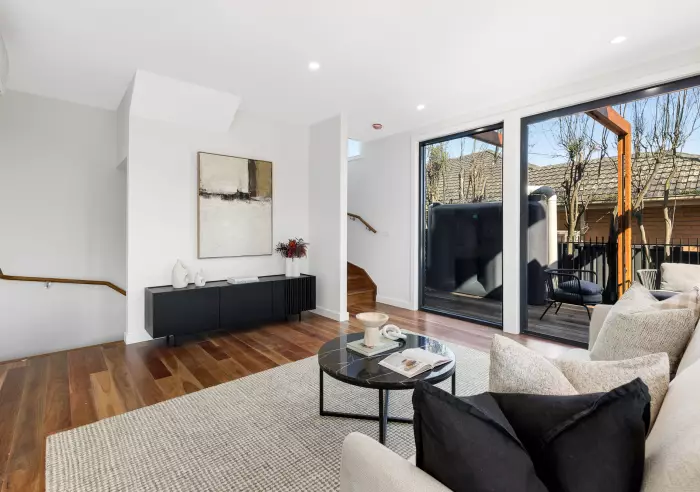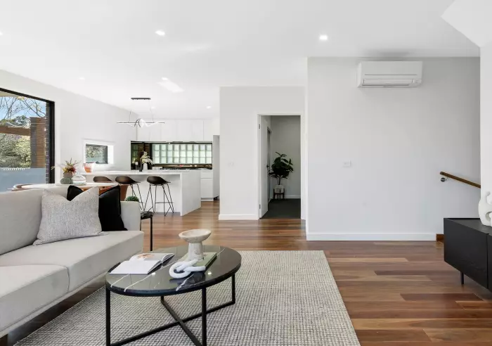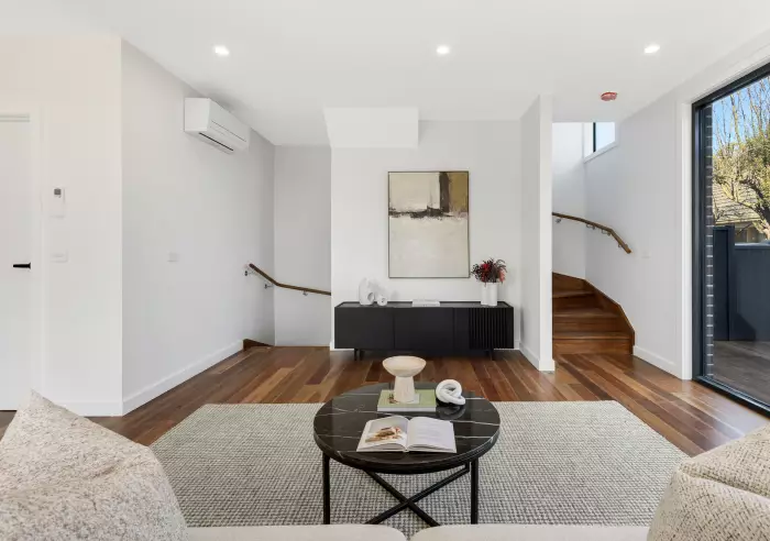 Accommodation comprises four spacious bedrooms and three bathrooms, including the flexibility of a main suite on either level. Each bathroom is beautifully finished with full-height tiling, split system heating and cooling throughout, secure lock up garaging ensuring day-to-day convenience and security