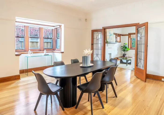 Discover the perfect elegance and classic charm at this stunning residence in the heart of Hawthorn East. This ART DECO period home, free from heritage overlay, features warm timber elements and Deco-style leadlighting that create a welcoming atmosphere. With four spacious bedrooms and a versatile layout, this property is ideal for multigenerational living, complete with an attached granny flat or teenagers' retreat that includes its own kitchenette.