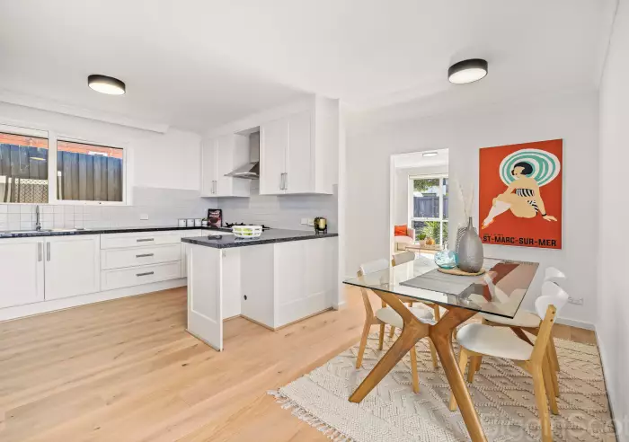 A three bedroom solid brick contemporary home in that most convenient of cosmopolitan locations that features an exceptional living zone, kitchen with meals, 2 bathrooms, a BONUS garage and a sunny north/west block with rear ROW for more potential parking. Refreshed, relaxing and ready to enjoy with neutral décor, pale boards and split system air.