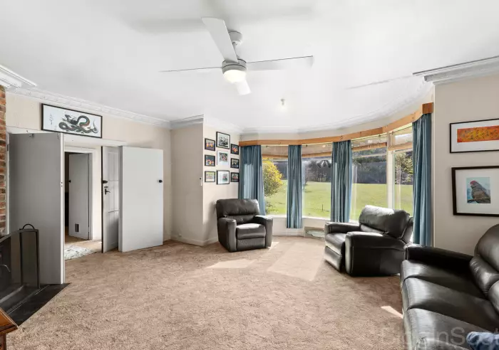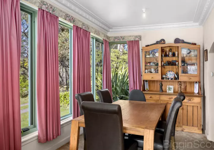 The large residence - full of character and charm - needs renovation to fully realise its potential. It provides four bedrooms plus a study, and two generous living areas. The main living-dining area features a bay window with a northerly aspect, framing views across a grassy open area towards the adjoining bushland. A separate zone within the house provides a living room, bedroom and a space suited for a kitchenette—ideal for guests, extended family or independent living. Upstairs, a large attic bedroom adds flexibility, with scope for further transformation.