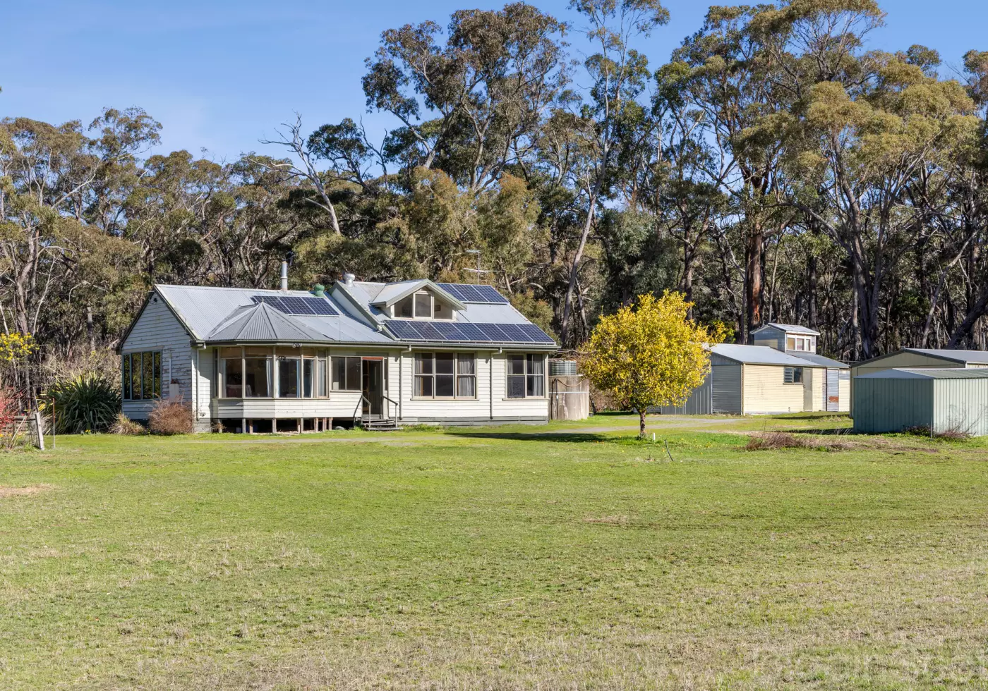 The property is well equipped with multiple sheds, workshops, and a studio, ideal for artistic or practical pursuits. There is a pretty bush dam at the rear of the property that is a popular watering hole of the passing wildlife. The property is connected to mains power and includes a solar system, rainwater tanks, septic wastewater and LP gas. With its generous landholding and scope for improvement, this property is ideal for buyers with vision who are ready to restore and create something truly special.