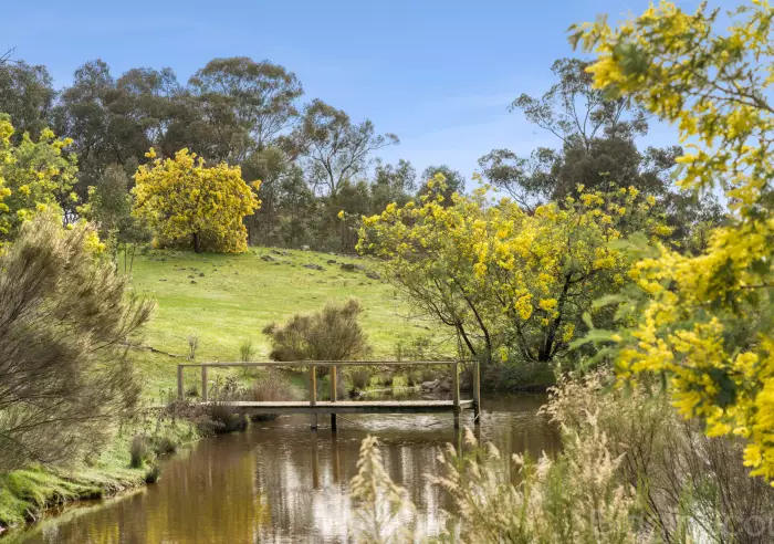 - Two beautiful dams framed by flowering wattles and timber jetties, enhancing the natural landscape and providing water security