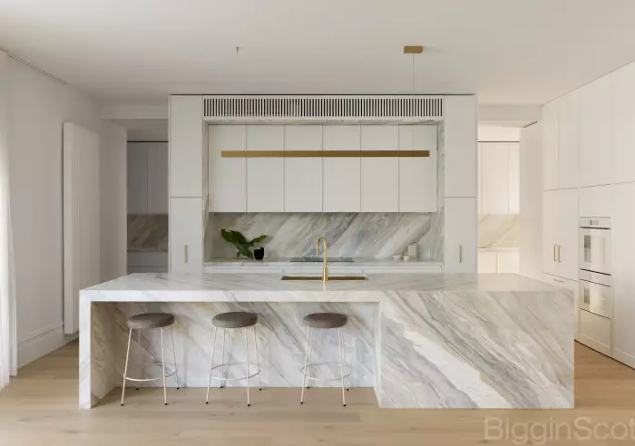 Every detail has been accounted for, from app-controlled security, CCTV and automated gates with front and rear parking, to video intercom, multi-zone climate control, French Oak floors, double glazing, hydronic heating, garden irrigation, and ABI brushed bronze tapware.