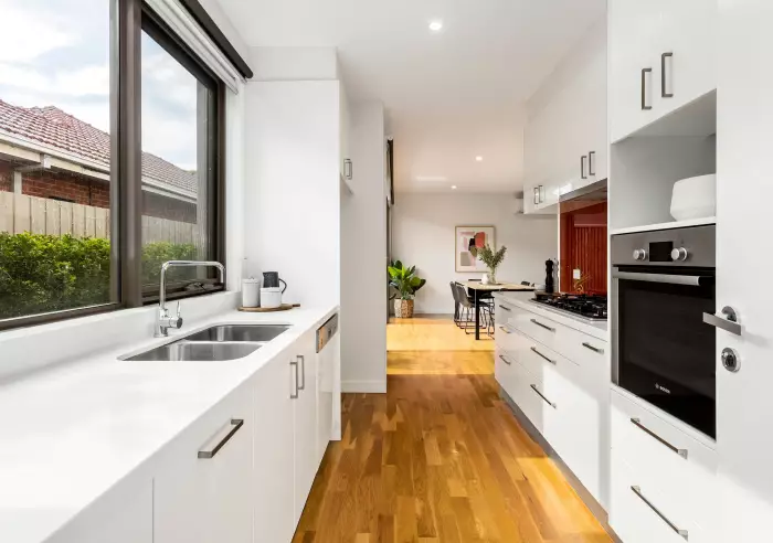 This beautiful three bedroom townhouse set in the middle of only three has it all. Downstairs comprising: Open plan living/dining area with access to outdoor patio, galley kitchen with gas/electric cooking & dishwasher, powder room, european laundry & under stair storage. Upstairs comprises: Master bedroom with built in robes & ensuite bathroom. Two further bedrooms both with built in robes, central bathroom & separate toilet. Features include: Polished boards downstairs, split system heating/cooling to all bedrooms & living/dining area, caeser stone benchtops, double roller blinds & double remote control garage with internal access. Leave the car at home & walk to the shops and Bentleigh train station just at the end of the street. *Located in the McKinnon School zone*