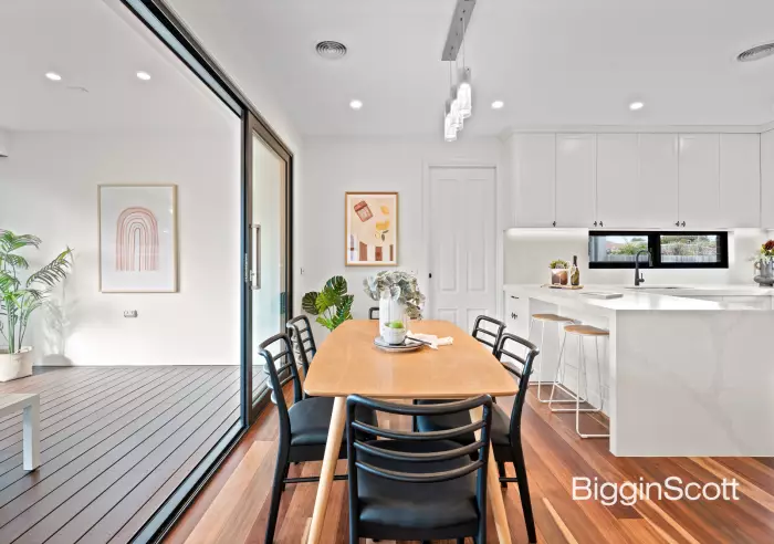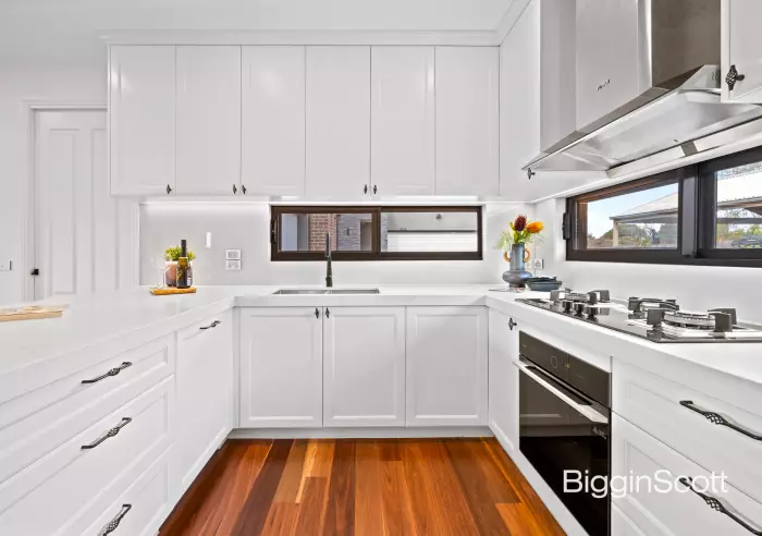 Step inside and be welcomed by timber floors and a thoughtful layout designed for family living. A gourmet kitchen with stone benchtops, European stainless-steel appliances and ample cabinetry is well positioned to serve both the dining and living rooms. From here, sliding doors open into the sunroom - a bright, versatile retreat ideal for morning coffee, family gatherings or year-round relaxation.