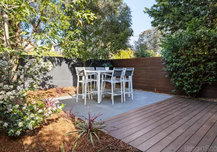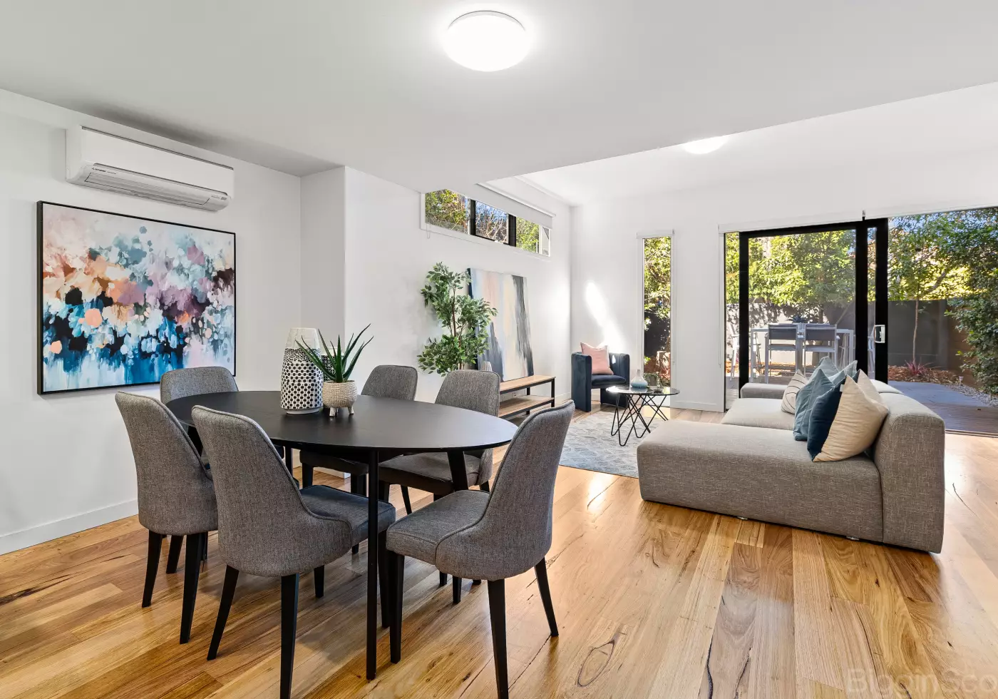 The downstairs easily caters for spacious dining, exceptional sitting, a study space and outside decking and a garden area that you will love. Upstairs and the two double bedrooms and two bathrooms are impressive with the home providing ample storage, all the comforts that you would expect and secure off-street carparking of course. Just walking distance to Glen Eira Road, and Carlisle Street shops, train and tram it is an everyday delight or the ideal lock up and go with the house offering the best in desired cosmopolitan easy living.