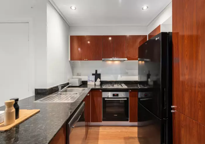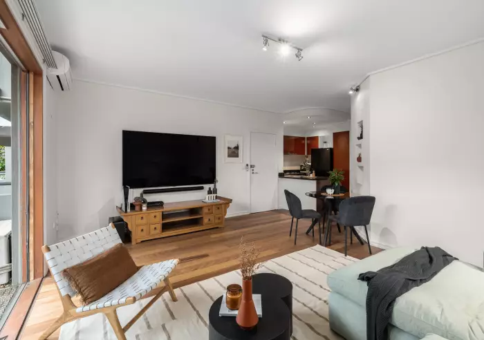 Secure, spacious and sophisticated, its living/dining area flows smoothly to an alfresco entertaining terrace while in the kitchen, stone benches and Bosch appliances tell a story of style.
