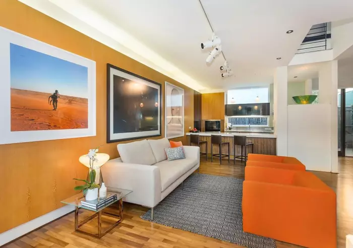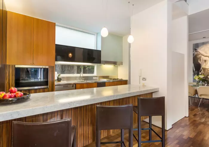 Full height sliding glass doors connecting the kitchen, living and dining rooms to the private designed terraces, capture and maximise the warm radiance of natural light.