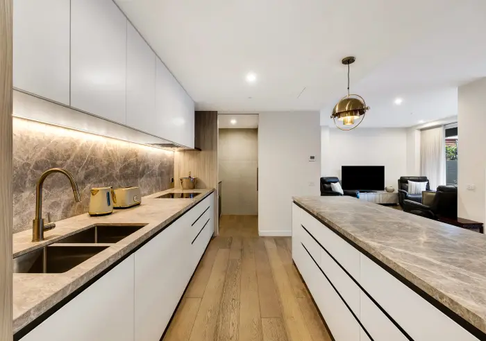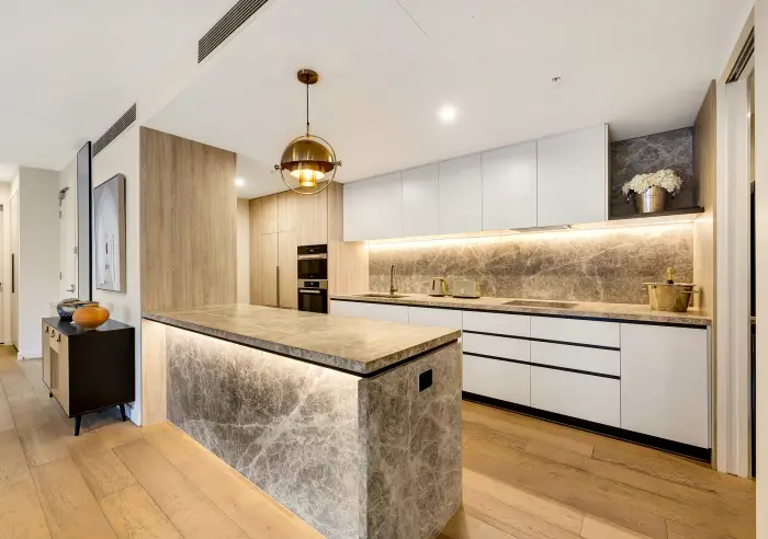 Every finish has been curated to the highest calabre: wide European oak flooring, bespoke joinery, opulant Tundra (silver) marble, and premium brushed nickel accents reflect craftmanship of enduring sophistication.