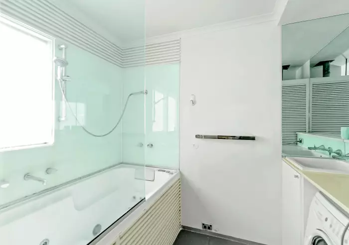 *Central bathroom with shower over spa bath, square sink & Laundry (Washing Machine inc)