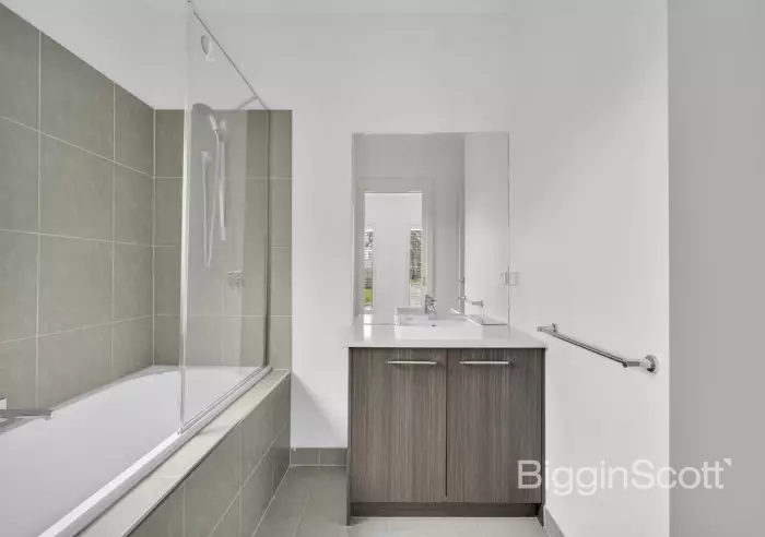 Two generous bedrooms, each filled with natural light, feature built-in robes and new plush carpets. They share a stylish semi-ensuite bathroom, offering both comfort and sophistication.
