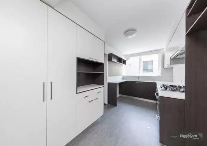 - Modern kitchen with appliances including a dishwasher and gas cook top