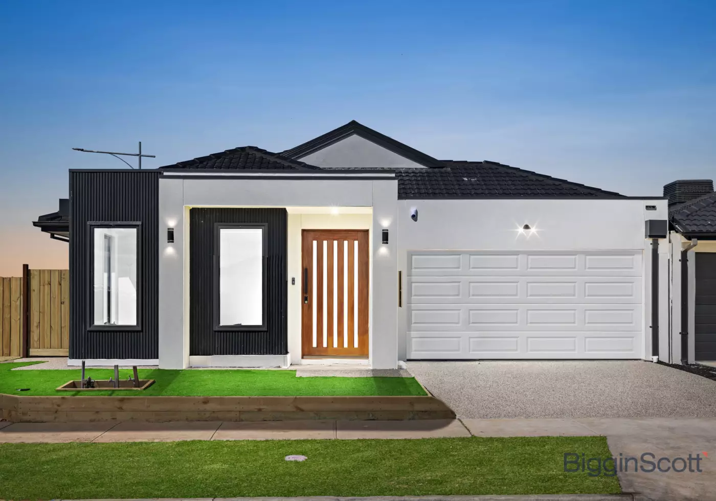 -Eye-catching street appeal with a bold modern façade and timber feature door