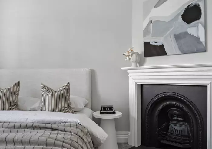 - A wrought iron fireplace and box bay window with plantation shutters are the highlights in the master bedroom, while generous designer robes are offered in both tranquil bedrooms.