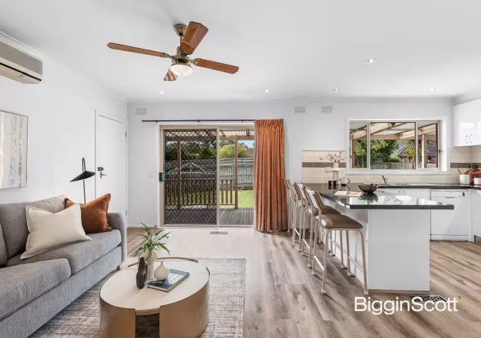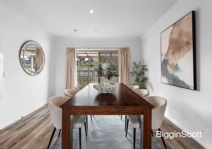 Effortless entertaining awaits with sliding doors extending to a north-facing alfresco, perfectly positioned to capture sweeping Dandenong Ranges views. The large, secure, low-maintenance backyard provides ample space, creating the ultimate safe haven for children and pets.