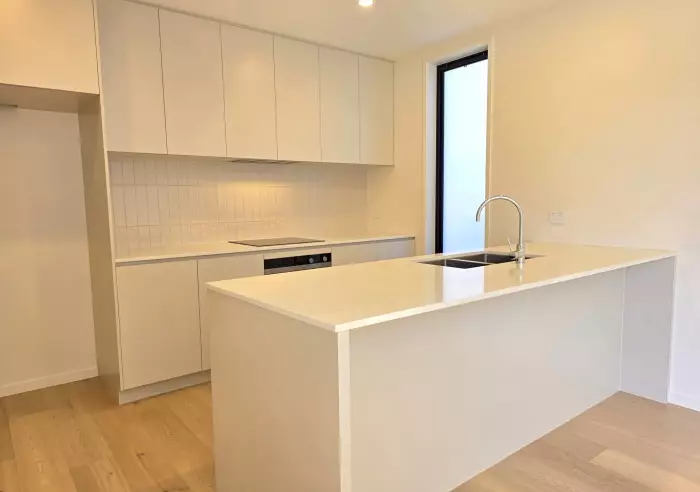 - Sleek stone kitchen benches with plenty of cupboards, induction cooktop , under bench oven and dishwasher.