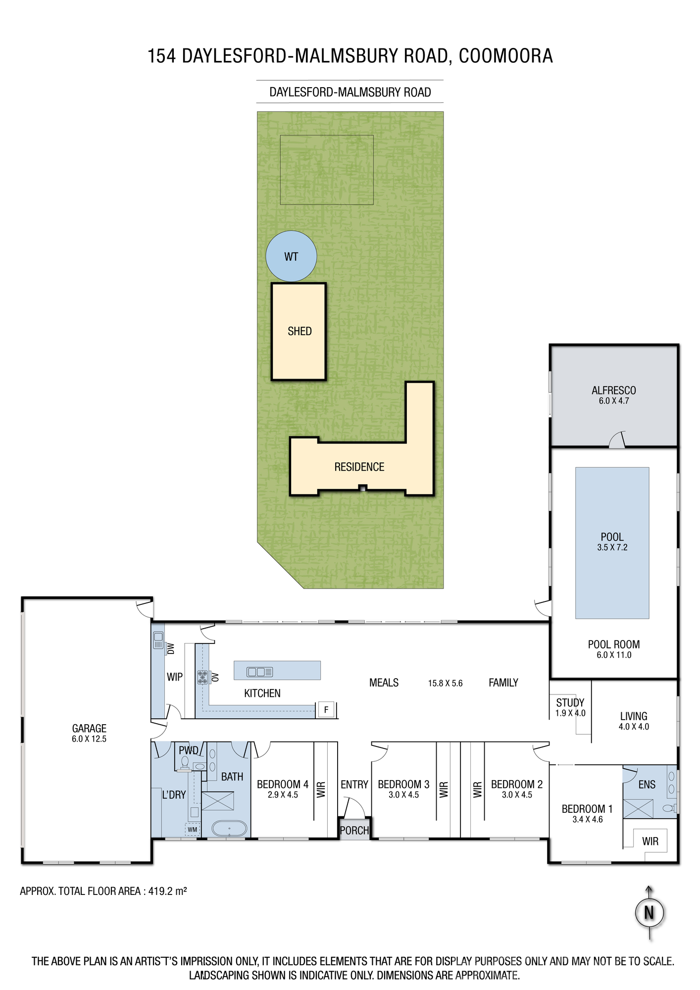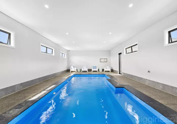 - Indoor heated swimming pool, pool room, alfresco, 4-car garage, and 21m x 12m shed.