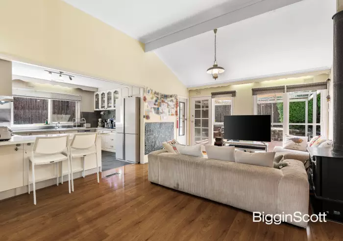 Overflowing with warmth and natural light, this delightful family haven sits peacefully amid established gardens on a broad 30m frontage. Inside, a relaxed open-plan layout combines a cosy lounge and dining area with wood heater, a fresh white kitchen, and an adjoining meals space - perfect for everyday living. Step outside to the leafy north-facing backyard, ideal for alfresco entertaining or a quiet morning coffee.