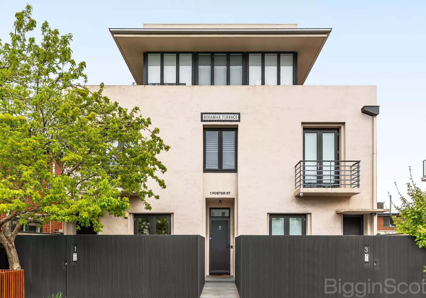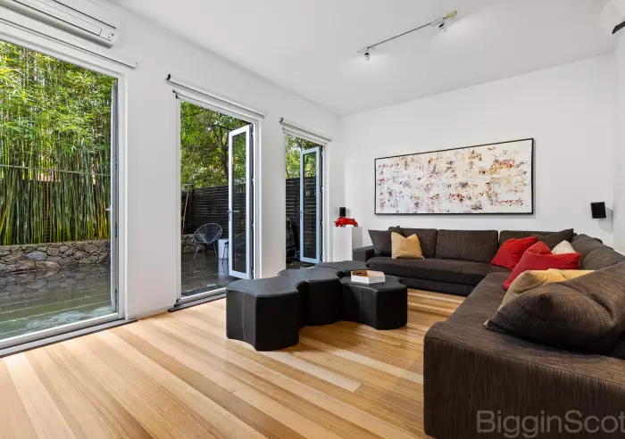 One of only three, innovative and architect designed. An exclusive and secure townhouse reflecting spacious modern dimensions and holding a quiet St Kilda position located near the St Kilda Botanical Gardens and Acland Street.