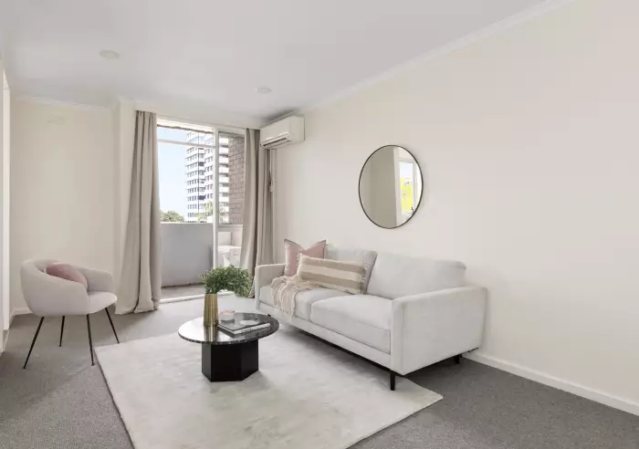 Enjoy the best of coastal living in St Kilda West, with this beautifully maintained one-bedroom apartment that offers generous proportions, abundant natural light and elevated views across the suburb. Combining lifestyle, comfort and convenience, it’s ideal for first-home buyers, downsizers or investors seeking a low-maintenance address in a blue-chip Port Phillip pocket.