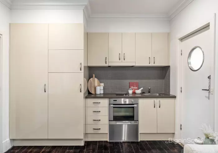- Modern kitchen with European appliances including dishwasher and built in fridge
