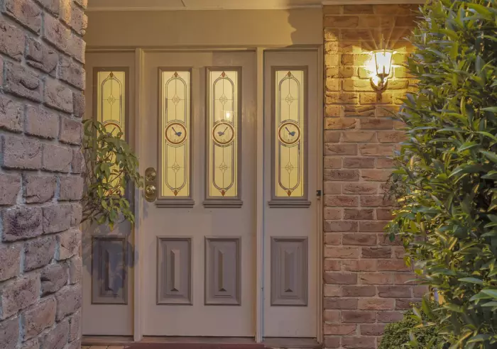 Brick-paved pathways, entertaining terraces, and tiered garden beds add structure to the beautifully landscaped grounds, where sculpted greenery and flowering shrubs create a formal yet welcoming garden. There's room for children and pets to play on the lawn beneath established trees, while raised beds and a flourishing lemon tree provide homegrown produce.