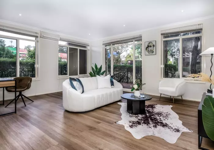 Set within the highly regarded St Claire complex, this stylish ground-floor apartment offers a rare sense of space, privacy and outdoor living. Instead of a single token balcony, you’ll enjoy two generous terraces, each finished in warm terracotta tones that add a welcoming touch of character.