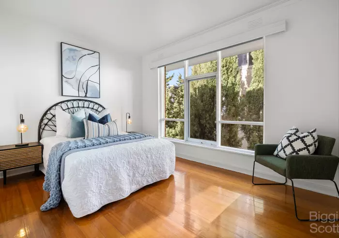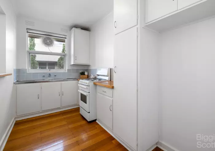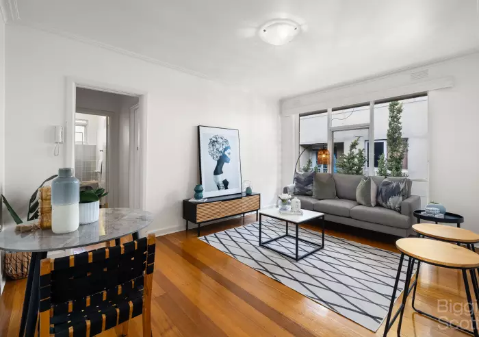 In the heart of vibrant St Kilda is this spacious one bedroom apartment with polished boards throughout. Quietly located on the top floor in this secure block, it also comprises timber floorboards throughout, smart open-plan kitchen with gas cooking, lounge with heating, double bedroom with built-in robes, extra storage in hall, central bathroom and communal laundry facilities. Walking distance to St Kilda's trendy cafes and restaurants on both Fitzroy and Acland Streets.