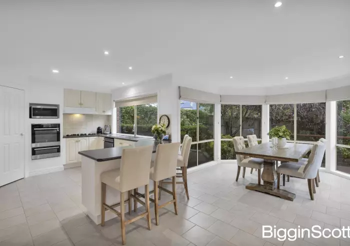 Beyond this, the interior then opens into a series of generous living zones, including a lounge or home theatre with ceiling-mounted projector, adjoining dining room, family room and an atrium-style meals zone wrapped in glass for relaxed meals or casual get-togethers. The entertainer's kitchen is equipped with a breakfast bar, wall oven, gas cooktop and dishwasher, making prep and hosting a breeze. A large laundry and guest powder room complete this level. Upstairs, the kids have their own zone with two bedrooms, a modern bathroom with deep soaking tub and a bright retreat area for study or play. Abundant roof storage also add to the practicallity.