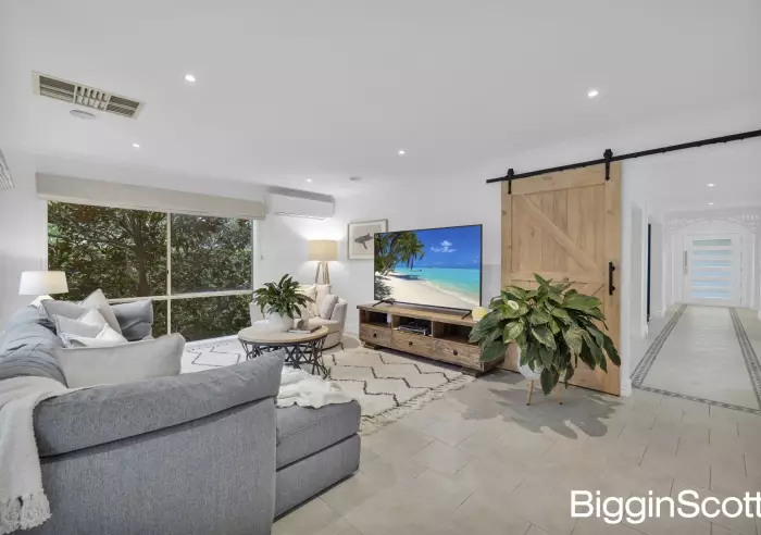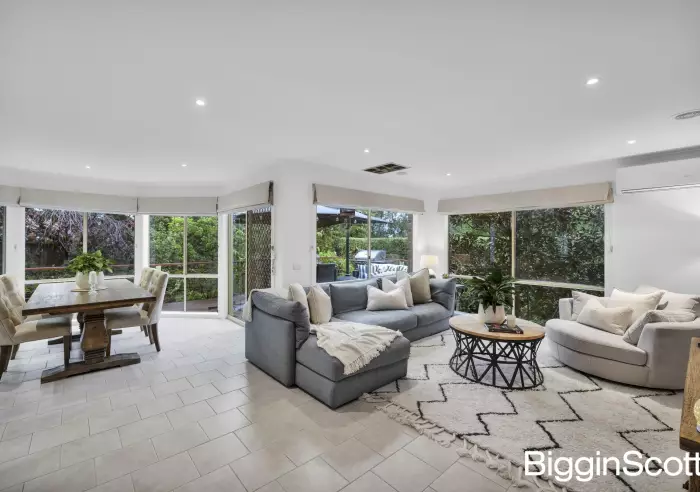 Out the back, a covered alfresco deck looks across a private, lawned garden where there's space for kids, pets and long summer lunches. Year-round comfort comes via ducted heating and cooling plus a split-system unit, while a double garage and expansive picture windows that frame leafy garden views complete the package.
