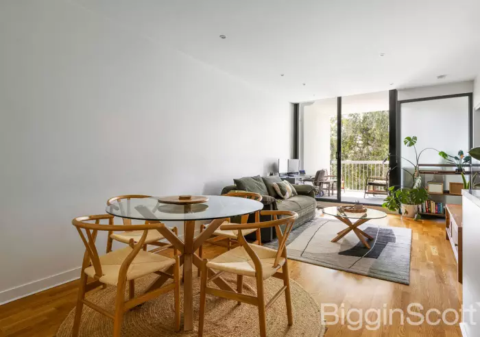 Welcome to an incredibly spacious one bedroom apartment that offers the ideal floorplan and a perfect combination of indoor and outdoor living. The modern kitchen provides stainless steel appliances and dual stone bench tops. An open living and dining flows seamlessly through to your undercover balcony with lovely views over the lush treescape opposite. The bedroom is generous in size featuring walk in robe and a sparkling bathroom with European laundry services the apartment. Extra features include split system heating/cooling, lift access, video intercom and secure garage parking.