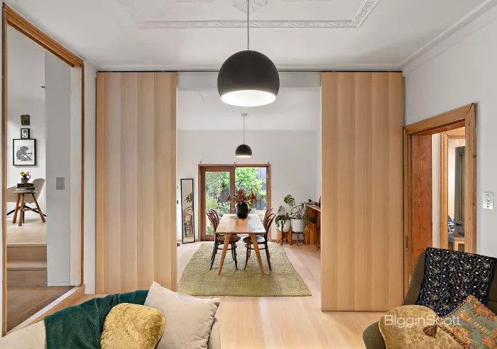 - Pale oak floors flow seamlessly between old and new, guiding first past two substantial bedrooms to an elegant formal lounge with decorative ceiling and the versatile dining zone or possible kids’ retreat/additional bedroom opposite.