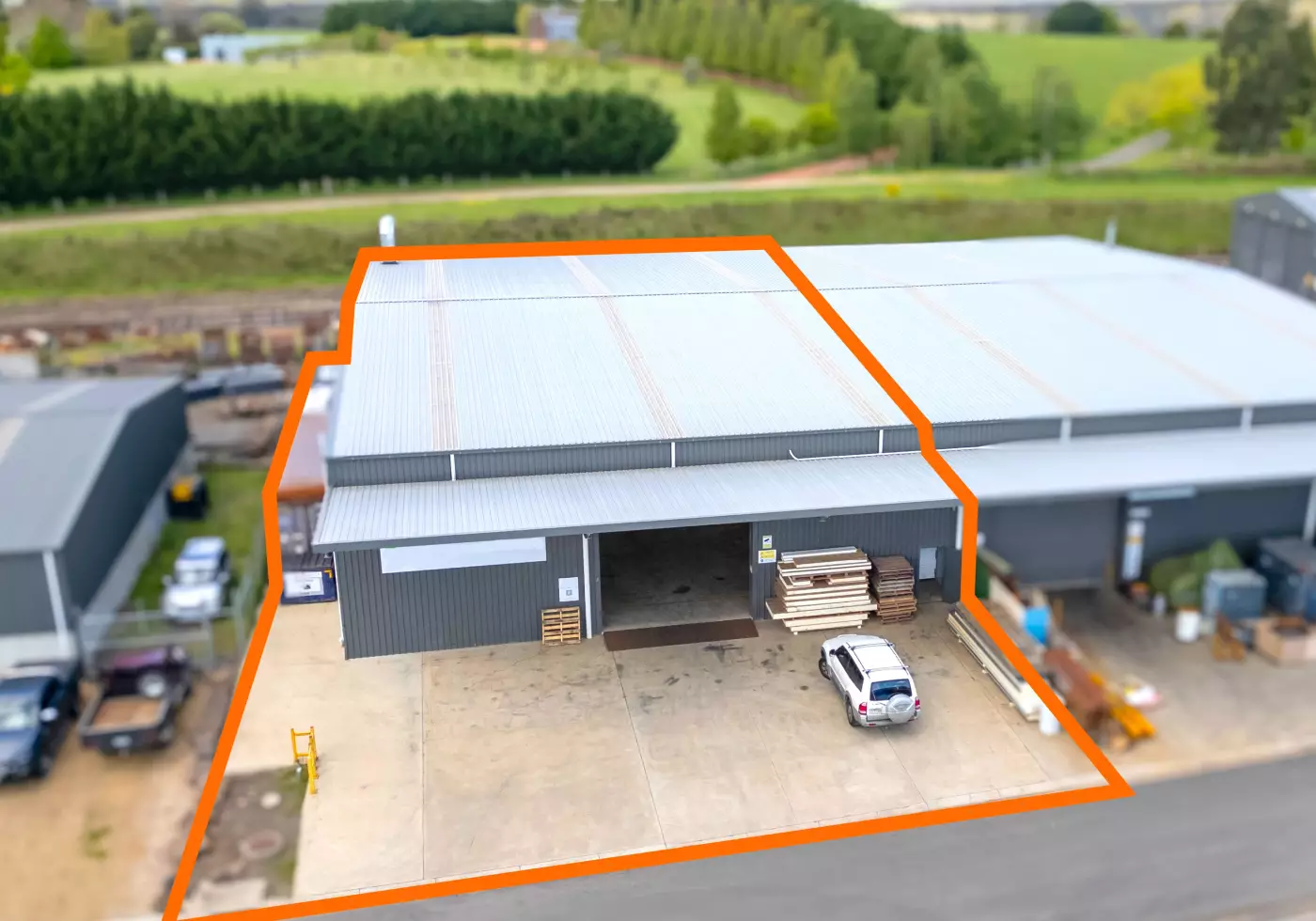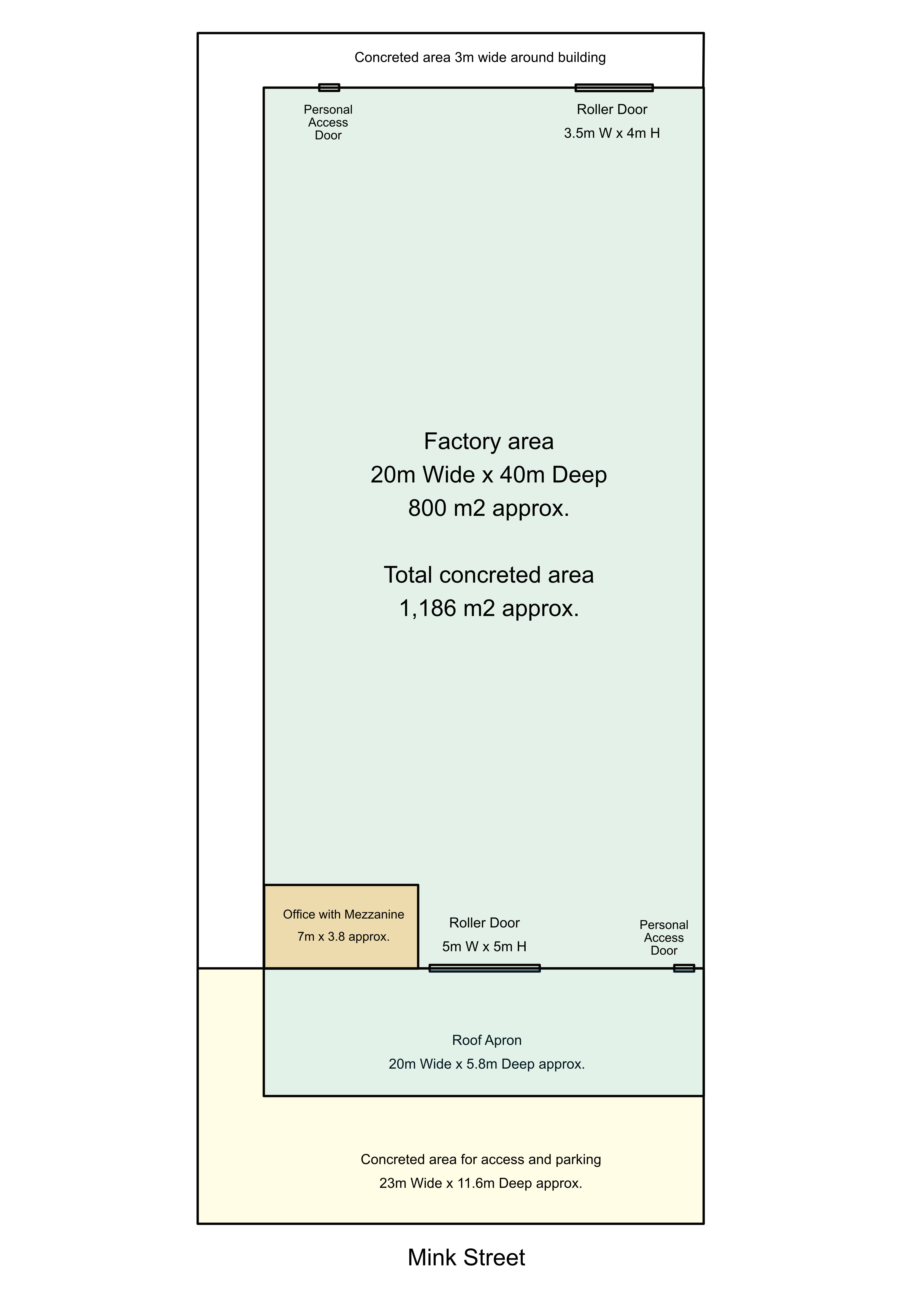 A practical office with kitchenette and toilet facilities provides a comfortable administrative space, while the total concreted area of approximately. 1,186m² allows easy vehicle and equipment movement.