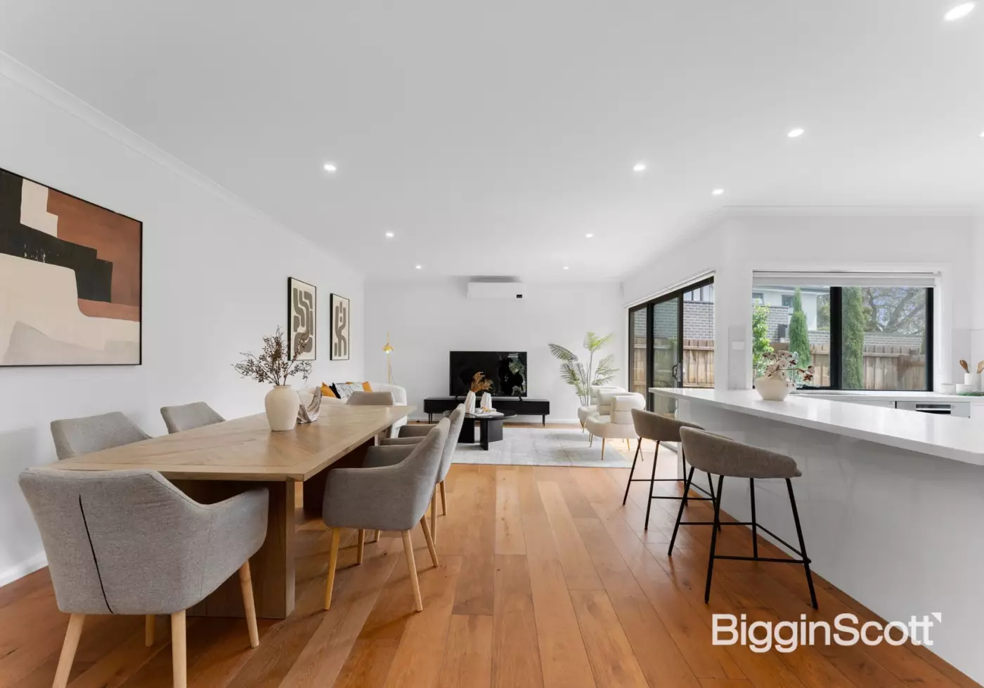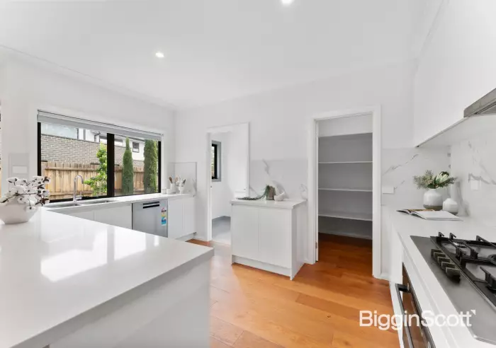 Carefully considered design elements, premium finishes and sophisticated styling set the stage for exemplary lifestyle living in this luxury townhouse, delivering a modernist influence in a laid back setting that will appeal to discerning families.Drawing you into the home, a wide entry with double height ceiling void entices you past the study zone, before arriving at the vast open plan living and dining room detailed with high ceilings and contemporary floorboards. Indulging the avid chef, the adjoining kitchen showcases sleek stone benchtops, 900mm Bosch appliances, Bosch dishwasher, soft-close cabinetry, walk-in pantry plus a breakfast bench.