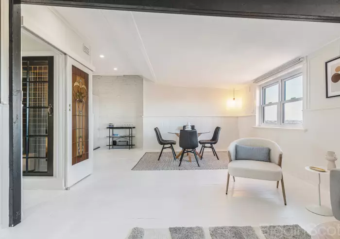 The very top apartment in the historic 1800’s Star and Gater Hotel – a St Kilda icon. Boasting magical views of the city, bay and Palais, the apartment has been renovated with sophistication, style and class. Two oversized bedrooms, sweeping living and dining, beautiful décor, and much more. The block is boutique and features bonus car parking in one of the area’s most noted and popular streets that leads directly to the Esplanade and famous St Kilda beach.