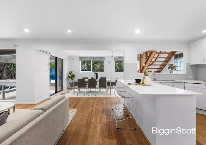 Ideal for social occasions, the open plan area extends through sliding doors onto an alfresco deck and paved entertaining area that sits beside a compact lawn area, cubby house and gated access to a children's playground.