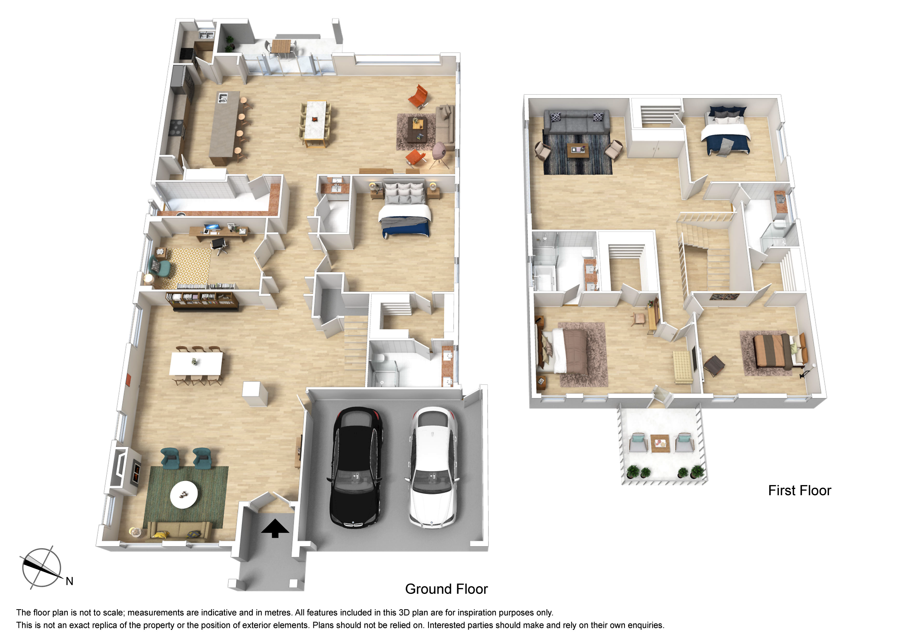 A staircase carries you up to an expansive rumpus that accompanies three of the five bedrooms, including an indulgent master bedroom with walk-in robe, spa ensuite with dual vanity plus a private balcony. While a bathroom with toilet conveniently services the remaining upstairs bedrooms. Ideal for in-laws, a guest bedroom with walk-through robe to dual vanity ensuite rests on the entry level and is complemented by a fifth bedroom/study, powder room and large laundry.