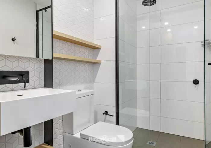 Central and ensuite bathrooms, both with walk up showers, rain head and matt black finishes