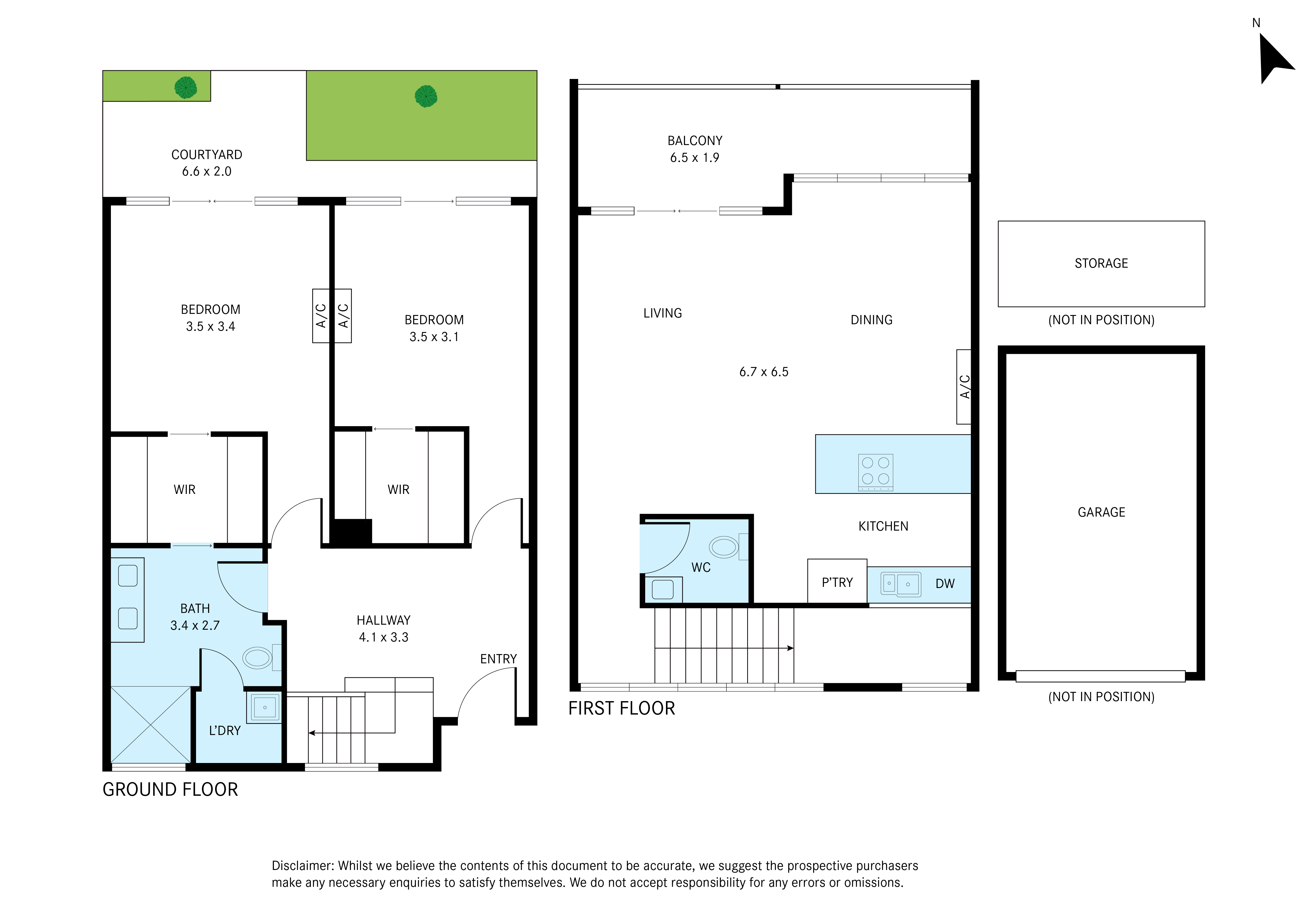 - Two generous bedrooms. Both with walk in robes and direct courtyard access. Master with ensuite.