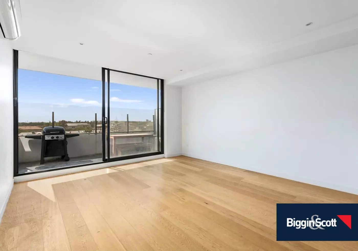 A high quality build sees superb fittings and fixtures included throughout this sleek apartment which includes timber flooring, stone benchtops, premium Miele appliances. The open design kitchen, lounge and dining flows effortlessly through to the main terrace, which allows great indoor and outdoor integration. Two generous bedrooms, both with built in robes are serviced by a central sparkling bathroom. Neatly hidden is the European laundry. Assisting this apartment is storage cage and 1 secure garage car stacker. What makes this so special is the access to communal rooftop terrace which encompasses amazing views of surrounds, from city skyline to Port Phillip Bay, the perfect spot to have dinner on balmy summer evenings.