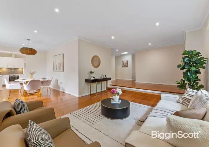 Modernised to maximise family appeal, this light-filled home has been updated over the years to create a haven of comfort in a convenient location that’s close to shops, trains and the tranquillity of Blackburn Lake Sanctuary. Glistening polished floorboards greet you as you step inside and continue from the foyer through to the L-shaped lounge and dining that continues through to a stylish kitchen containing stone benches, Bosch oven and gas stove, Asko dishwasher plus an island breakfast bench.