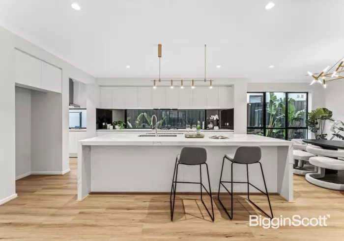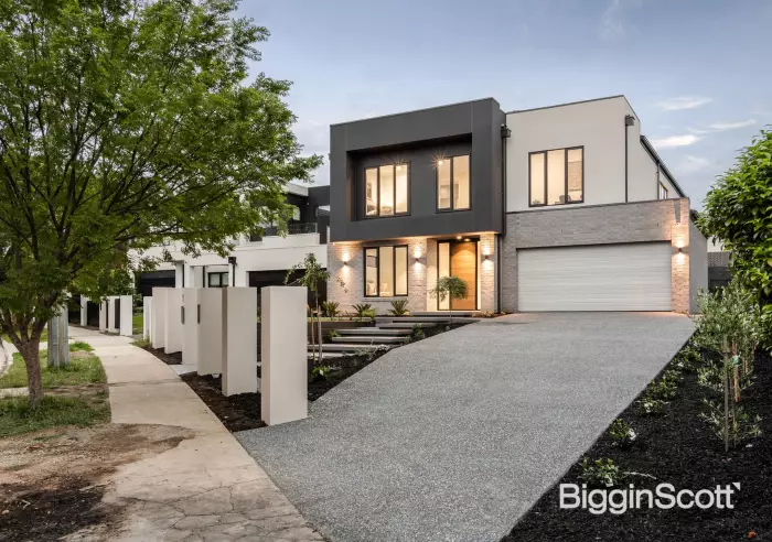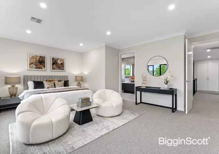 Crafted with contemporary luxury at the front of mind, this brand-new home has been designed to create the ultimate family lifestyle with multiple living zones and magnificent alfresco entertaining alongside a basketball court and child-friendly yard. Spread over two levels, the stylish interior unfolds to deliver a versatile formal lounge/study area that’s comforted with carpet, while sleek flooring is a highlight in the expansive kitchen, dining and family room. Flaunting premium appointments, the kitchen reflects high-end glamour complete with waterfall stone benches, an island breakfast bench, Bosch appliances (twin ovens, gas stove plus a semi-integrated dishwasher), accompanied by a butler’s kitchen with Bosch gas stove. Adding further indulgence, the home spans into a rumpus room and out onto the alfresco entertaining space that’s set alongside the basketball courtyard, lawn area and landscaped gardens. Completing the ground floor, you’ll find the 5th bedroom with walk-in-robe and 2-way ensuite effect bathroom, plus a full-sized laundry. While upstairs, the retreat leads through to the remaining four bedrooms, all with walk-in-robes and ensuites, including the master bedroom where you’ll find a dressing room, extra study plus a dual vanity ensuite. Perfected by the quality appointments of solar panels for energy savings, ducted heating/air conditioning for year-round comfort, high ceilings, alarm, security cameras plus a double garage with internal access. In the East Doncaster Secondary Zone, walking distance to Donburn Primary and Tunstall Square shops, near Westfield Doncaster, Donvale Reserve, buses and the benefits of the Eastern Freeway.