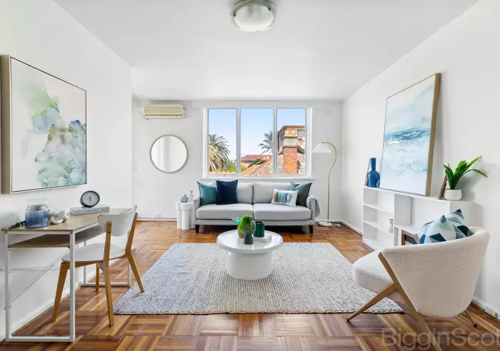 A brilliant apartment that just says yes by virtue of its sensational location bound by the beach, the Peanut Farm Reserve across the way and Acland Street beyond. Big and offering a load of easy living spaces this house sized apartment features an entry hall and along the way you will find 2 bedrooms and a central bathroom. To the end of the hall are the full width sitting and dining, kitchen with meals and the balcony that overlooks the park, carparking is under cover and secure. Comfortable, you can enjoy as is or bring some TLC and do your thing.
