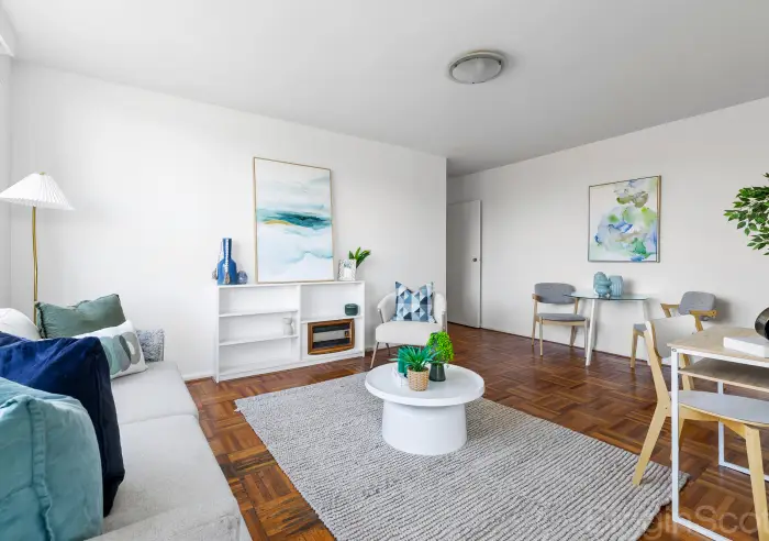 With sprawling views over the Peanut Farm Reserve and with Acland Street and the beach just in behind this brilliant, elevated first floor, secure and house sized 2 bedroom apartment, features a long central hall where you will find the 2 bedrooms and central bath and then beyond big open living, kitchen with meals and terrace.