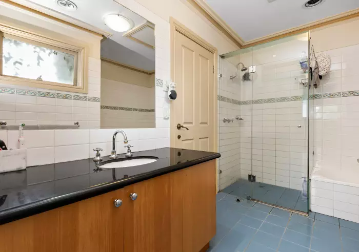 -Large bathroom with separate shower and bath, plus laundry facilities