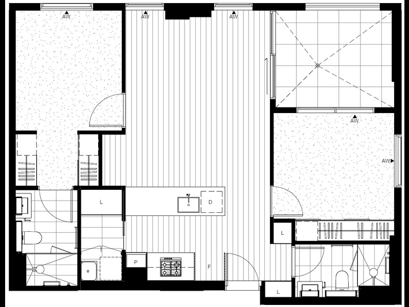 - Two queen-sized bedrooms with mirrored robes, positioned on opposite sides of the apartment for privacy and no shared walls (main bedroom with split system)