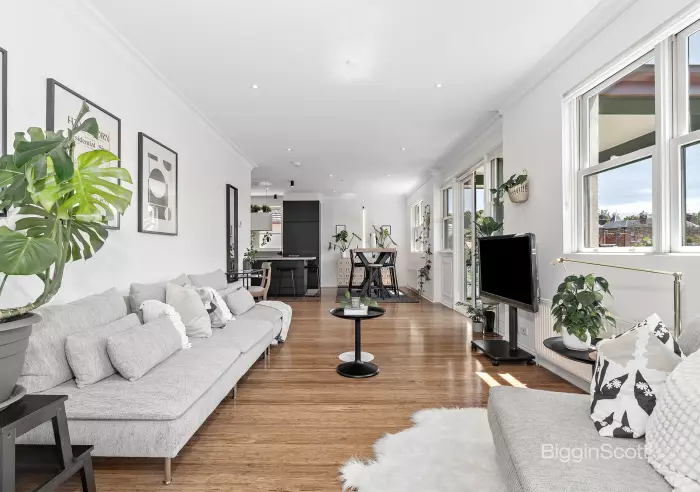 This truly unique apartment conversion — once the office of Australian government architects and engineers — is distinguished by its house-like interior, modern renovation, top-floor north-facing street-frontage, natural light aplenty, three shaded balconies, lock-up garage with carport and perfect location within a boutique block, mere steps from Hawthorn Station.